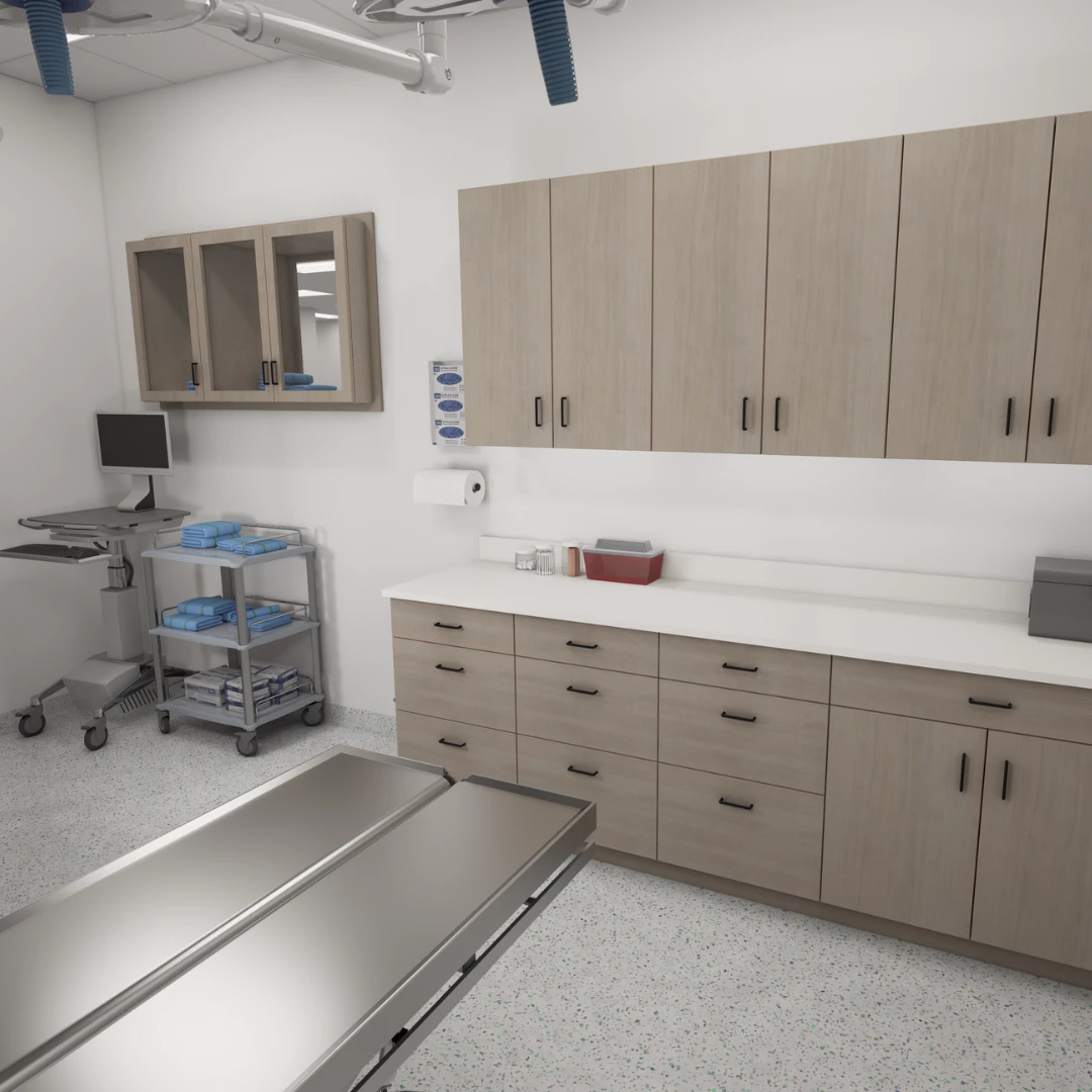 For example, our modular cabinetry can be reconfigured as your hospital grows, adapting to new services or additional exam rooms without the cost of an entirely new buildout. It’s practical, resilient, and made to support your team’s evolving workflow.