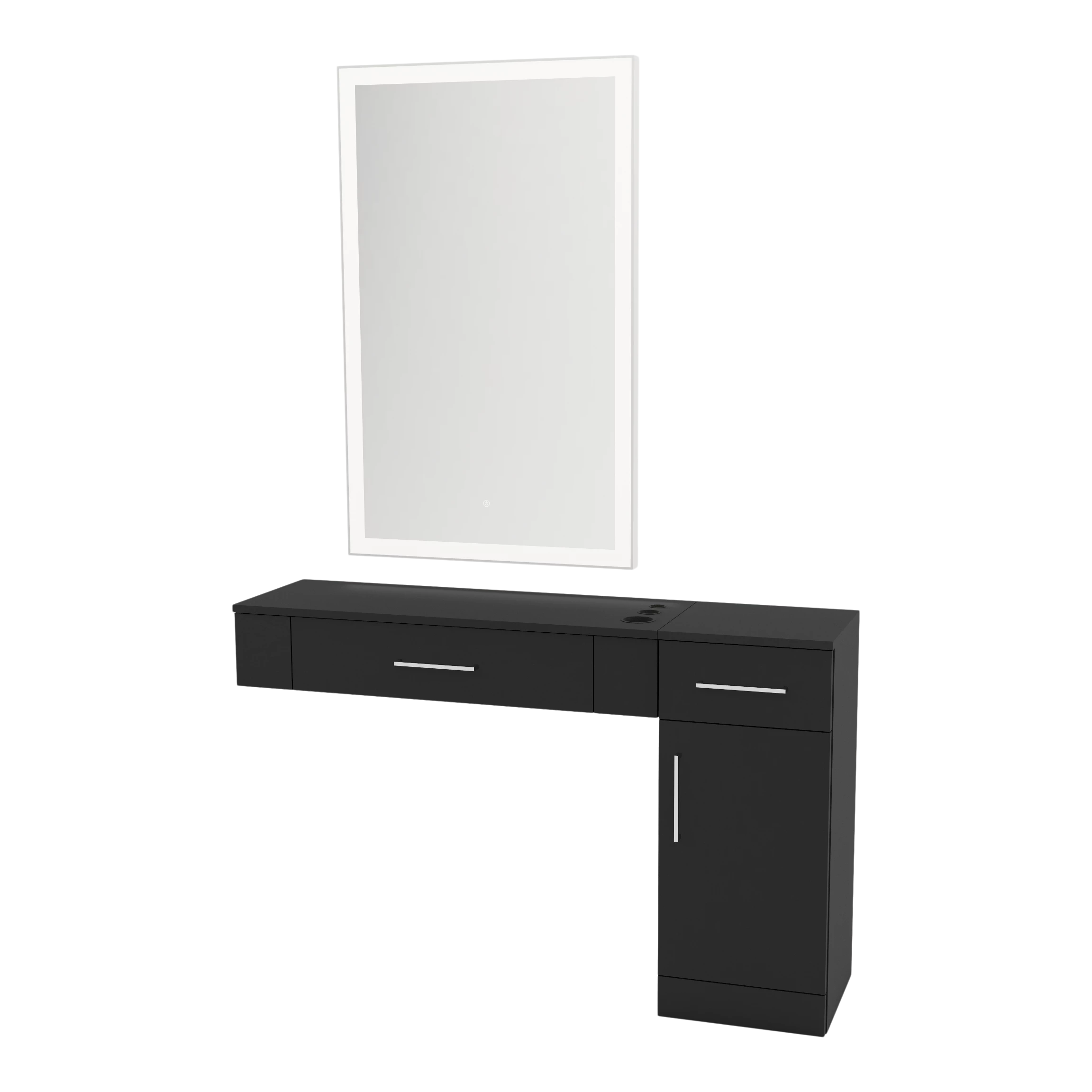 • Wall-Mounted Station with Short Tower Connector: A smart, wall-mounted unit combined with a short tower connector maximizes functionality and upholds a clean, modern look in any salon setting.